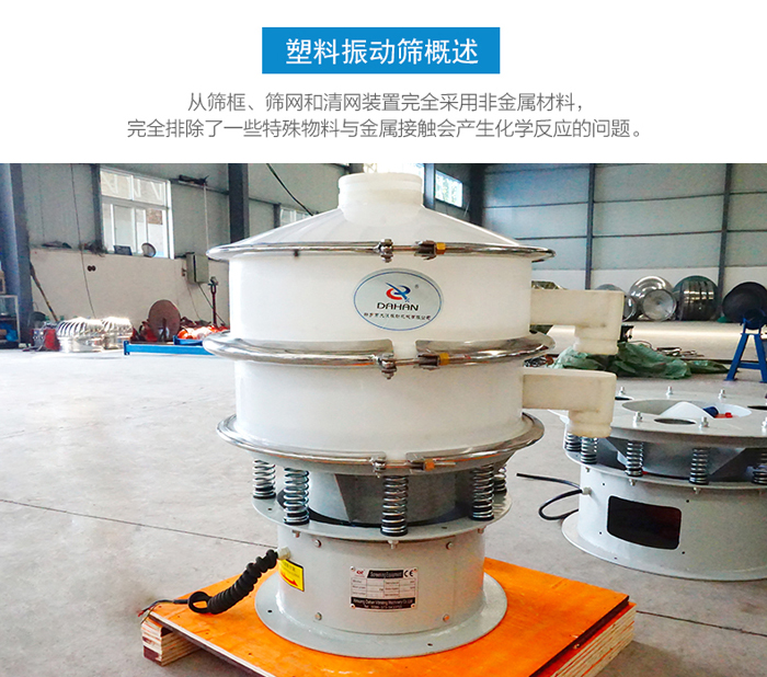 塑料振動篩也叫聚丙烯振動篩,塑料振動篩主要是為了解決篩分物料與金屬接觸而產(chǎn)生化學反應(yīng)的問題。聚丙烯振動篩:從篩框、篩網(wǎng)和清網(wǎng)裝置完全采用非金屬材料,完全排除了一些特殊物料與金屬接觸會產(chǎn)生化學反應(yīng)的問題。