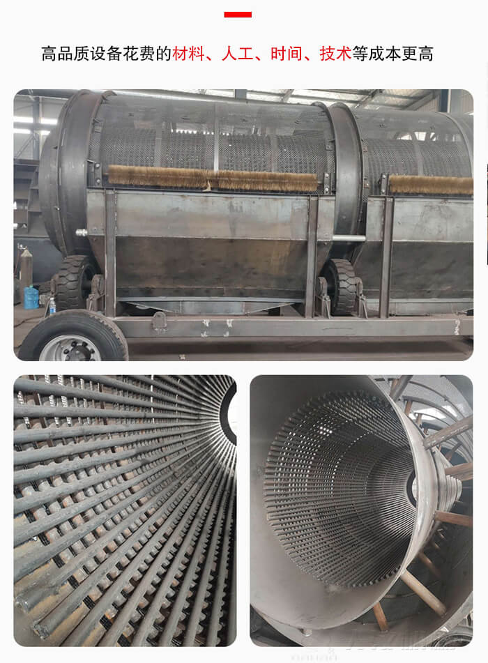 設(shè)備品質(zhì)是決定移動(dòng)滾筒篩價(jià)格的主要因素之一,質(zhì)量越好的設(shè)備做工更精細(xì),選材更用心,所以花費(fèi)的材料、人工、時(shí)間、技術(shù)等成本更高,其市場(chǎng)價(jià)格則會(huì)更高,成本自然而然就更高,其價(jià)格也會(huì)更貴,但是后期使用中效果(包括、、產(chǎn)量等方面優(yōu)勢(shì))也會(huì)更顯著,帶給用戶(hù)的利潤(rùn)價(jià)值更高。