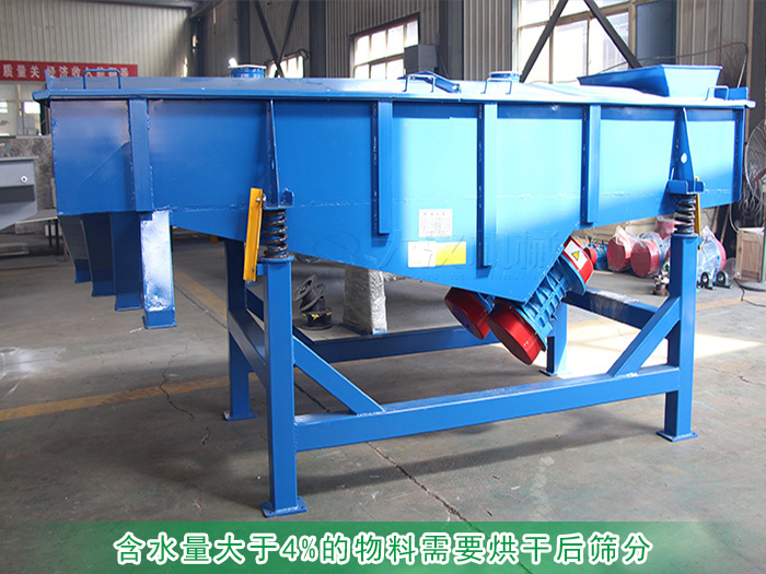 直線振動篩在篩分含水量高或者粘性高的物料時,需要減少物料的含水量后才能篩分使用,因為含水量高的物料更具有粘稠型,在篩分過程中容易吸附在篩網(wǎng)上,造成篩網(wǎng)堵塞,對于含水量大于4%的物料需要烘干后篩分,含水量大于20%時需要采用濕式篩分。